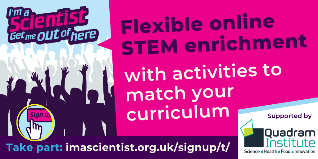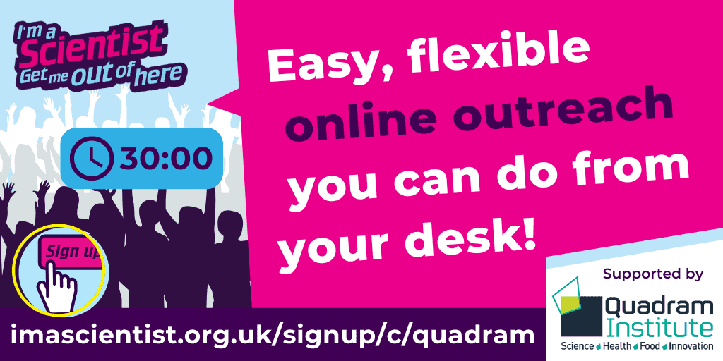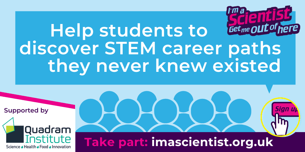 Connect with school students from around the UK in I’m a Scientist, supported by the Quadram Institute. The online activity helps students to see themselves in bioscience careers, and offers you “the best crash-course in science communication”.