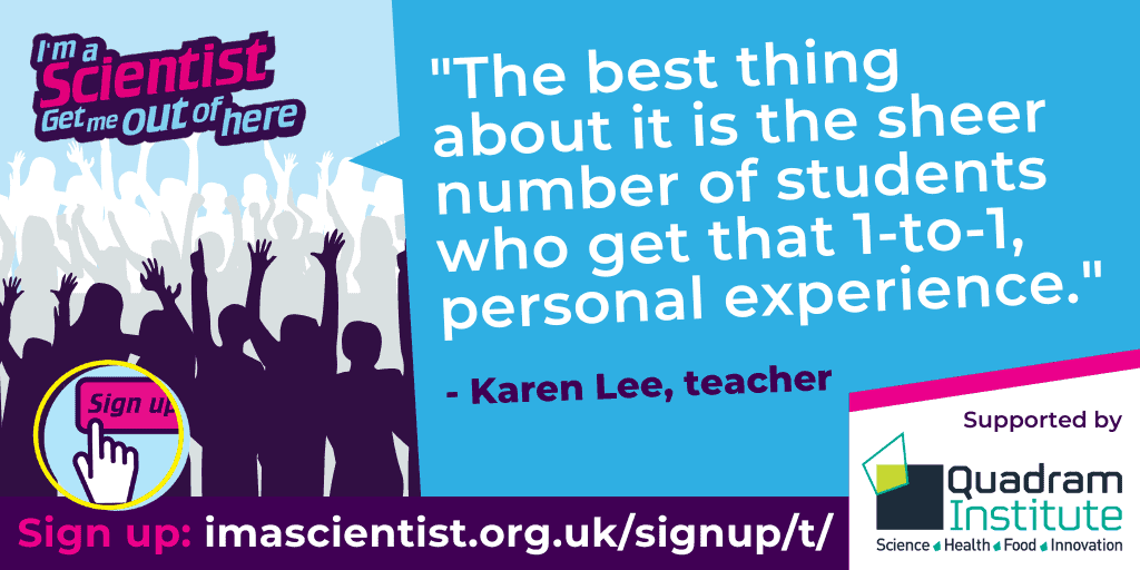 Take part in I’m a Scientist, Get me out of here and connect with school students from around the UK in online, text-based Chats.